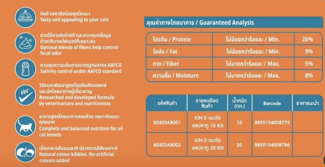 Kin Dee อาหารแมว กินดี สำหรับแมวโต รสปลาทู กระสอบ 20kg